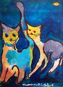 De schilderijen die ik maak zijn expressief, vrolijk, kleurrijk en figuratief.