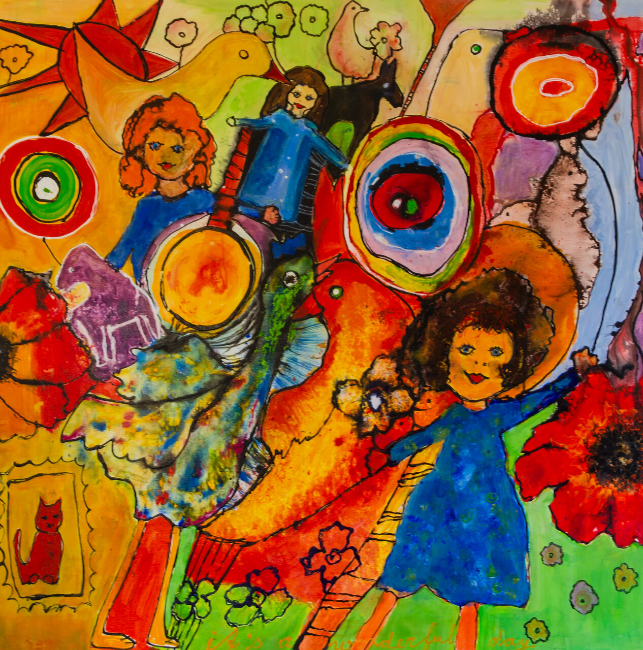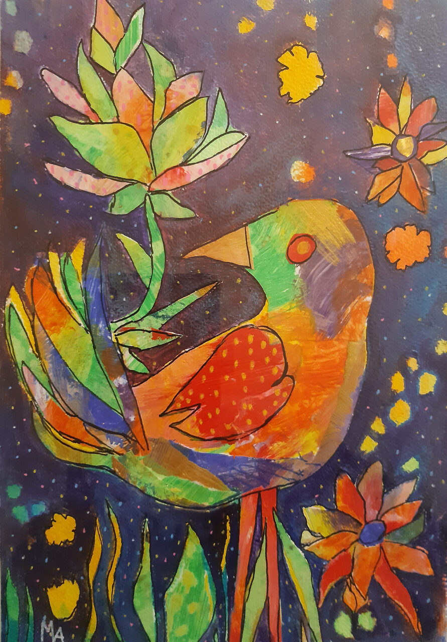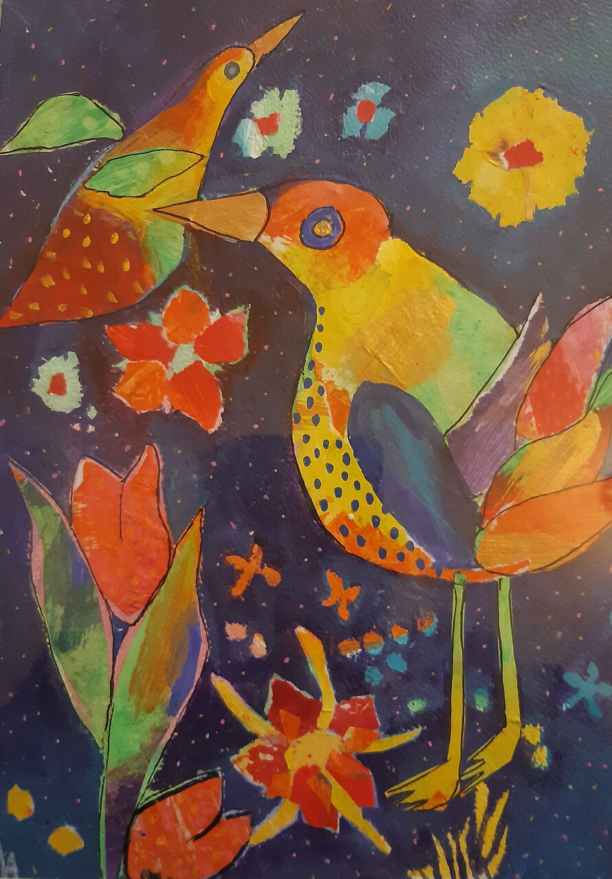 De schilderijen die ik maak zijn expressief, vrolijk, kleurrijk en figuratief.